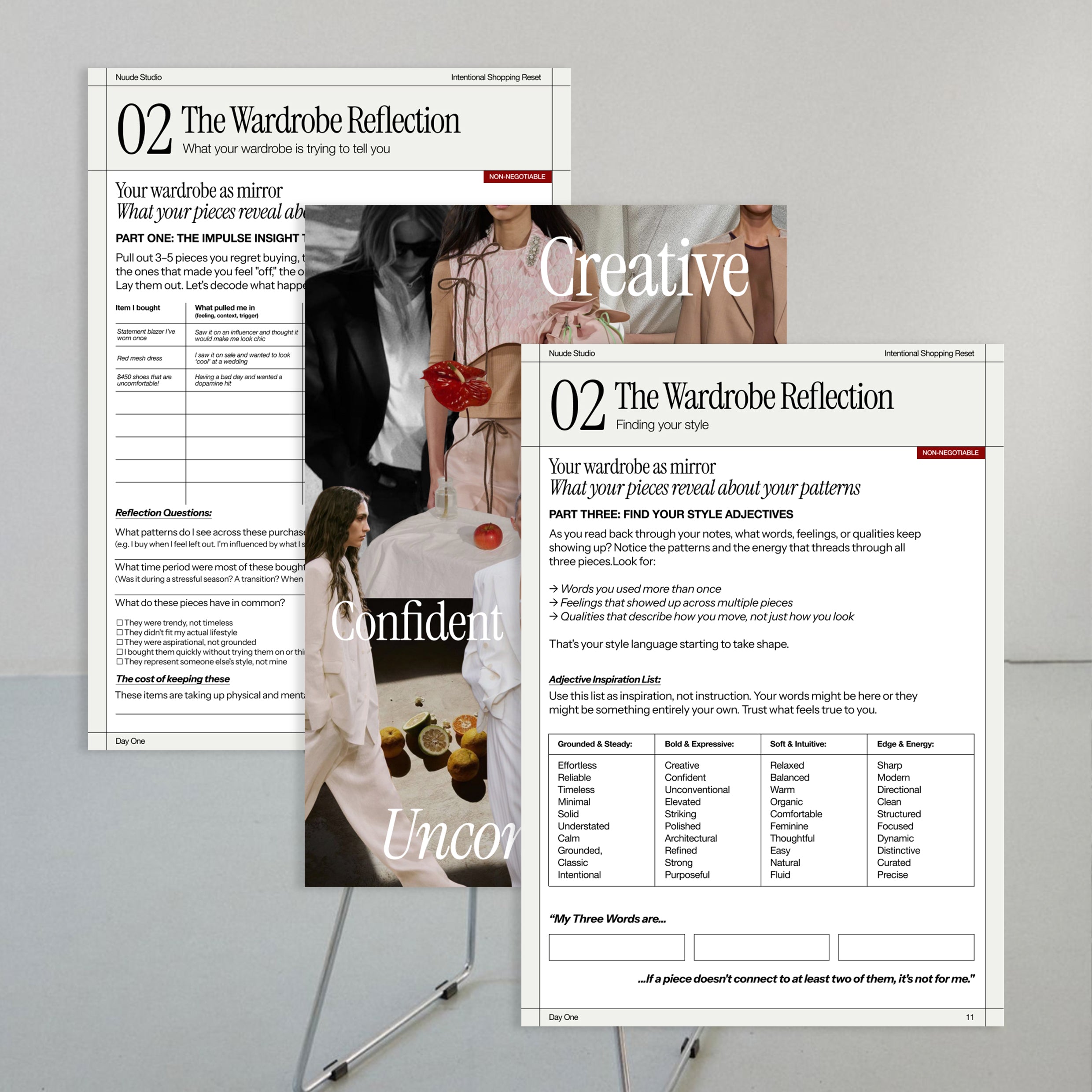 - Refining your three style adjectives based on your actual wardrobe