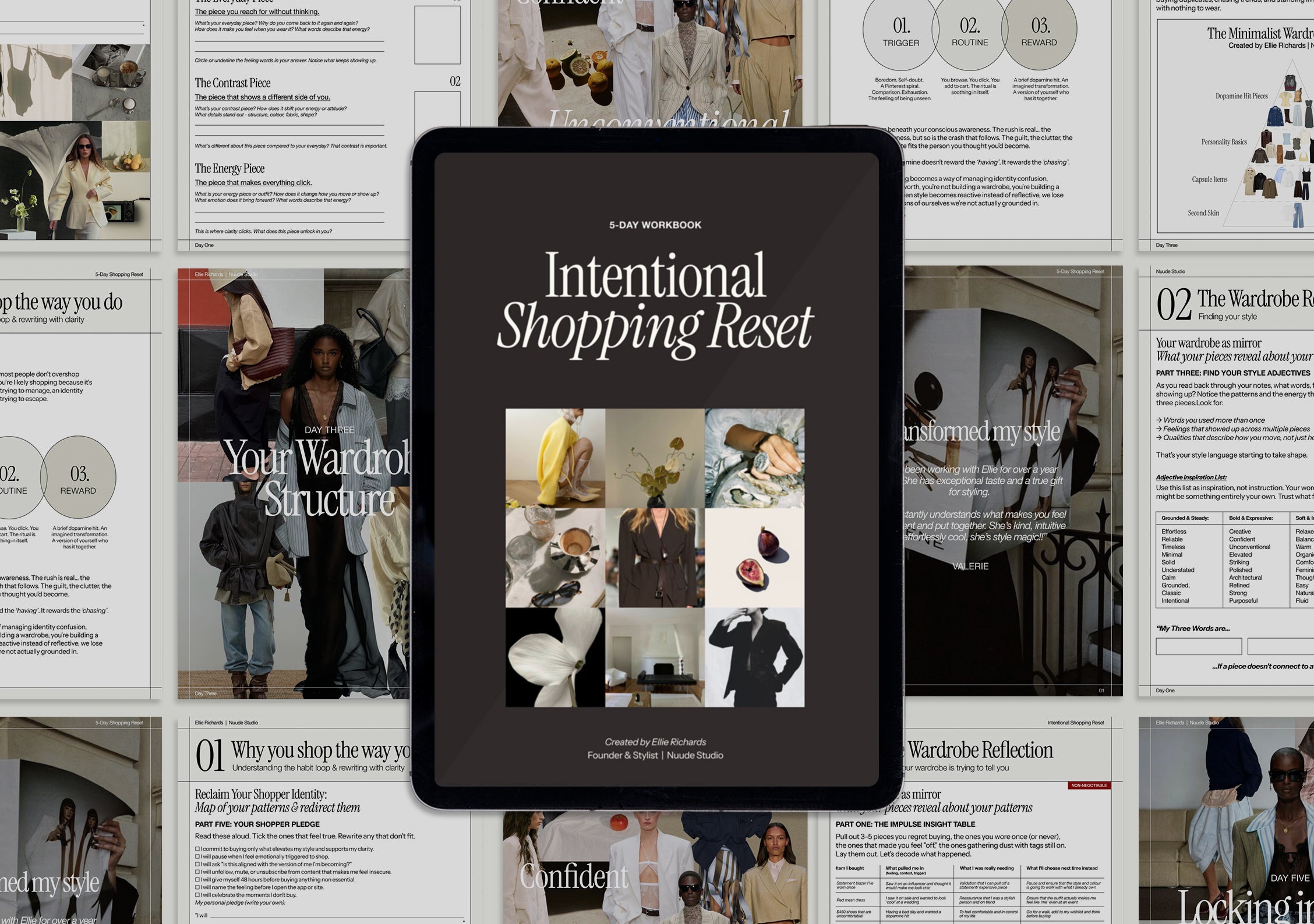 "I bought this thinking it would just be another 'organize your closet' guide, but it's so much deeper than that. Finding my three adjectives completely changed how I see my wardrobe. I decluttered 20+ pieces and I've never been able to do that on my own. I still get the urge to shop when I'm stressed, but now I actually pause and ask myself what I'm really needing."