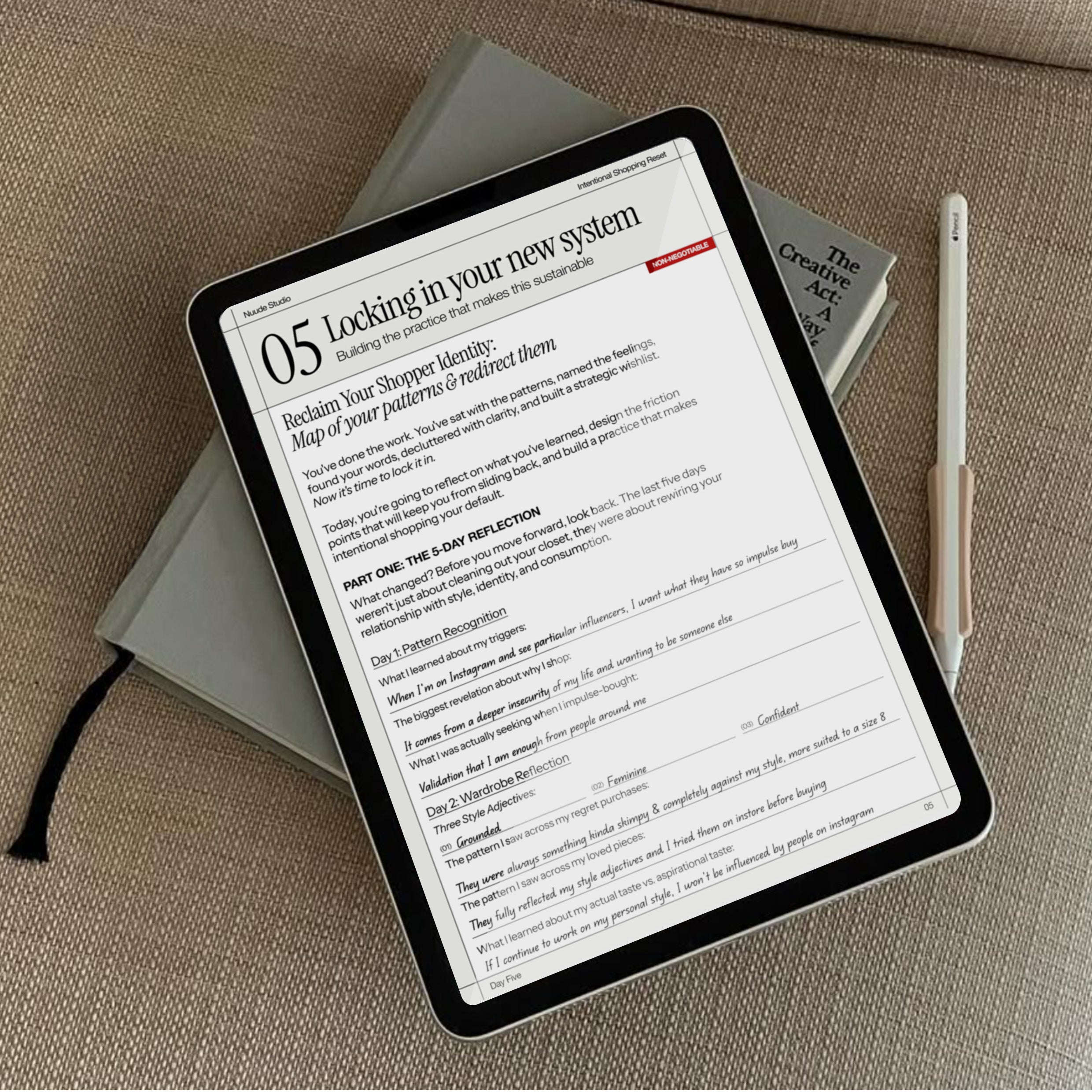 You can do this at your own pace. The 5-day structure is designed to create momentum and keep you accountable during the no-buy commitment, but life happens. You can spread it out over a week or two if needed. Just try to complete the exercises in order, they build on each other.